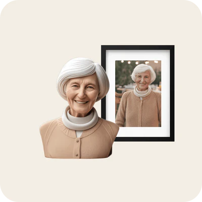 Erschaffe eine zeitlose Hommage mit einem individuellen 3D-Porträt, das ihre Erinnerung über Generationen hinweg lebendig hält.